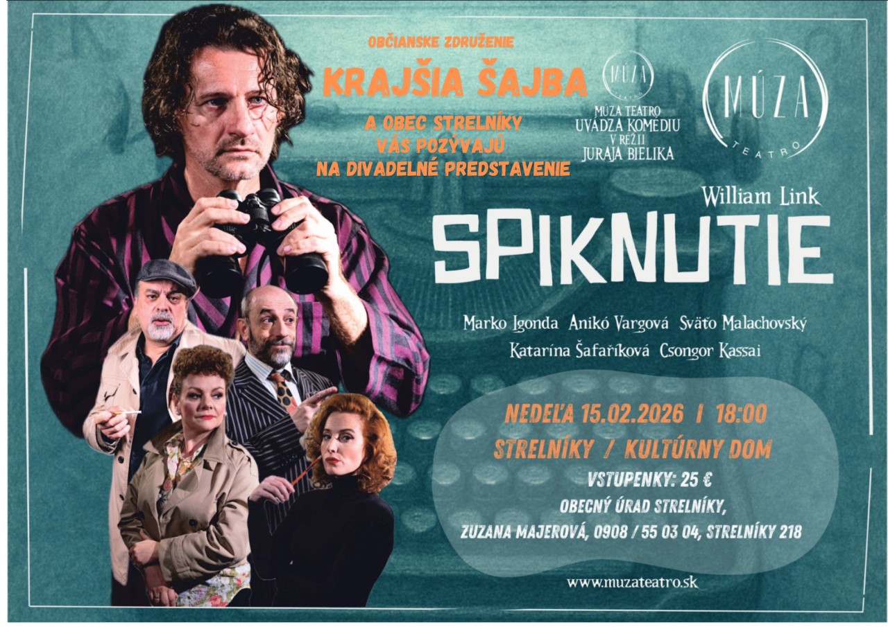 OZ Krajšia Šajba a Obec Strelníky s radosťou oznamuje, že sa chystá divadelné predstavenie Juraja Bielika. Toto podujatie sa uskutoční v nedeľu 15. februára 2026 o 18:00 v kultúrnom dome. Predstavenie sľubuje zaujímavý zážitok a je otvorené pre širokú verejnosť. Vstupenky sú dostupné za cenu 25 € a je možné ich zakúpiť na obecnom úrade alebo kontaktovaním Zuzany Majerovej na telefónnom čísle 0908 55 03 04. Nezmeškajte túto skvelú príležitosť a príďte si užiť kultúrny zážitok.